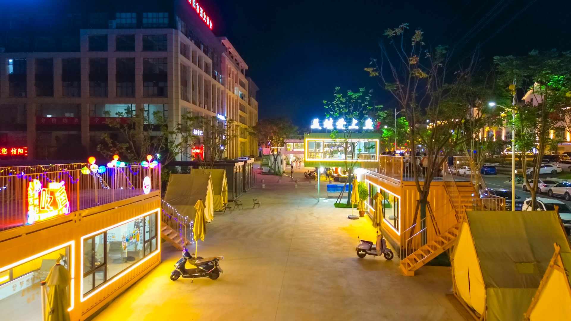 整体以集装箱、网红车、小木屋为主的商铺呈现多元趣味,将年轻、活力、时尚、潮流的生活秀场尽汇于此,打造时尚轻奢的全新消费场景、多元化的消费模式,形成独特的小院露营风格夜市空间,激发消费潜力,激活文旅消费市场,点亮城市新 “夜” 态。